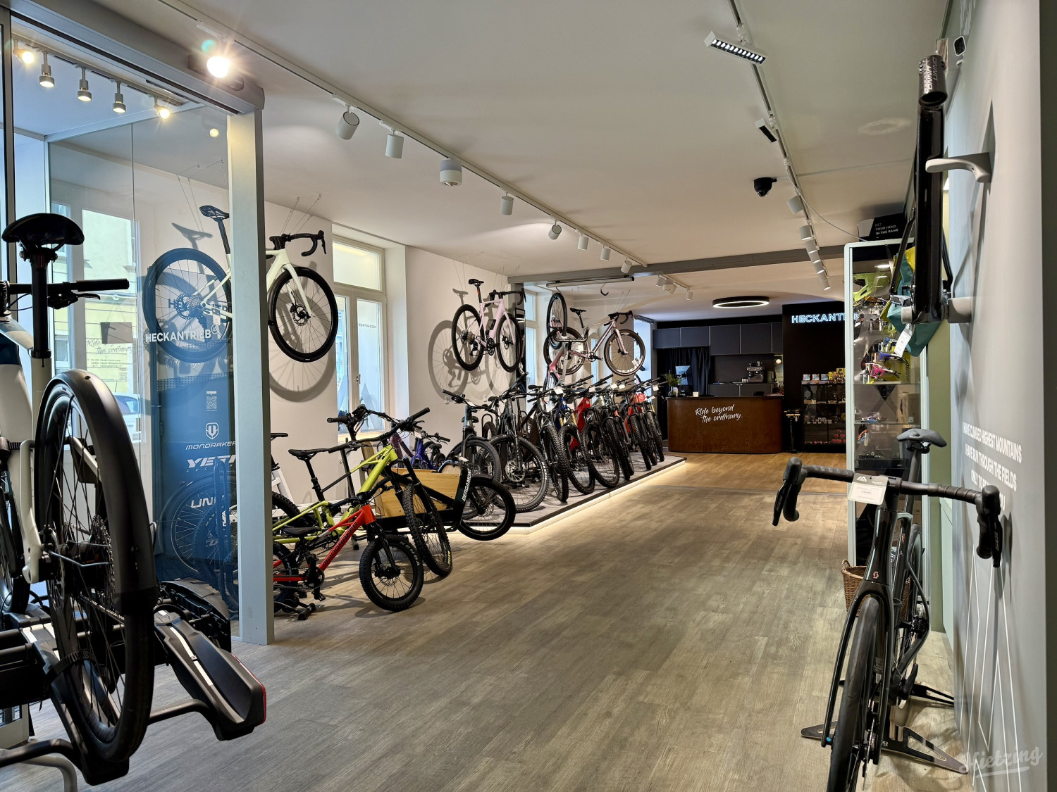 Auf einer Fläche von 170m² wird es Fahrräder für jeden Einsatzzweck geben. Vom Kinderrad bis zum Rennrad, vom eBike zum Lastenfahrrad und natürlich auch Citibikes für den täglichen Gebrauch: gemeinsam mit der Erfahrung des Rad-Profis findet sicher jeder das perfekte Bike für sich! Der Fokus liegt auf Fahrrädern der bekannten Marke „Scott".