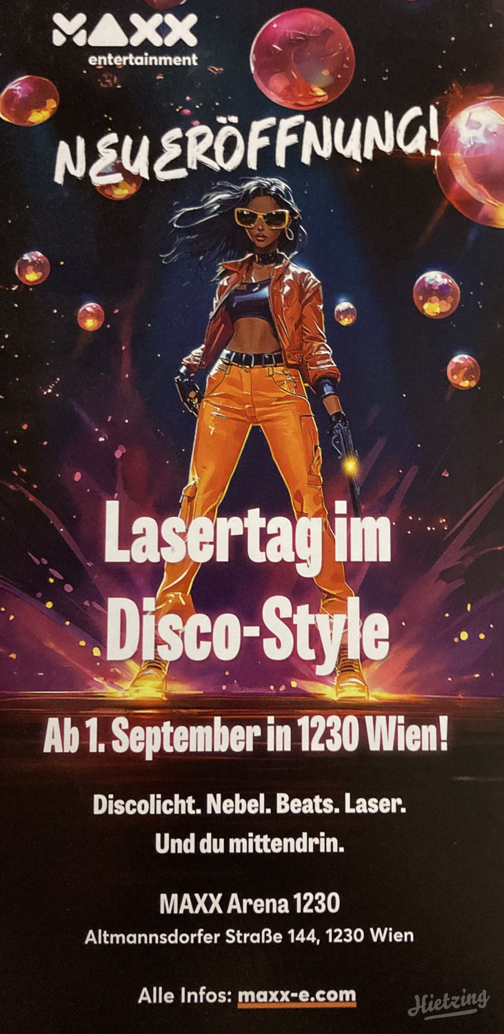Seit dem 1. September ist Wiens Freizeitlandschaft um ein echtes Highlight reicher: Mit MAXXentertainment hat im 23. Bezirk – direkt an der Grenze zum 13. Bezirk – eine brandneue Lasertag-Arena mit einzigartigem Disco-Motto eröffnet! Ob mit Freunden, Familie oder KollegInnen: Wer Action und gute Stimmung sucht, ist hier genau richtig.